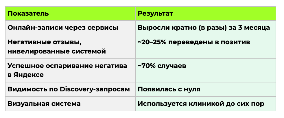 Также настроили прямые ссылки на сервисы онлайн-записи — чтобы путь от «нашёл клинику» до «записался» был максимально коротким.