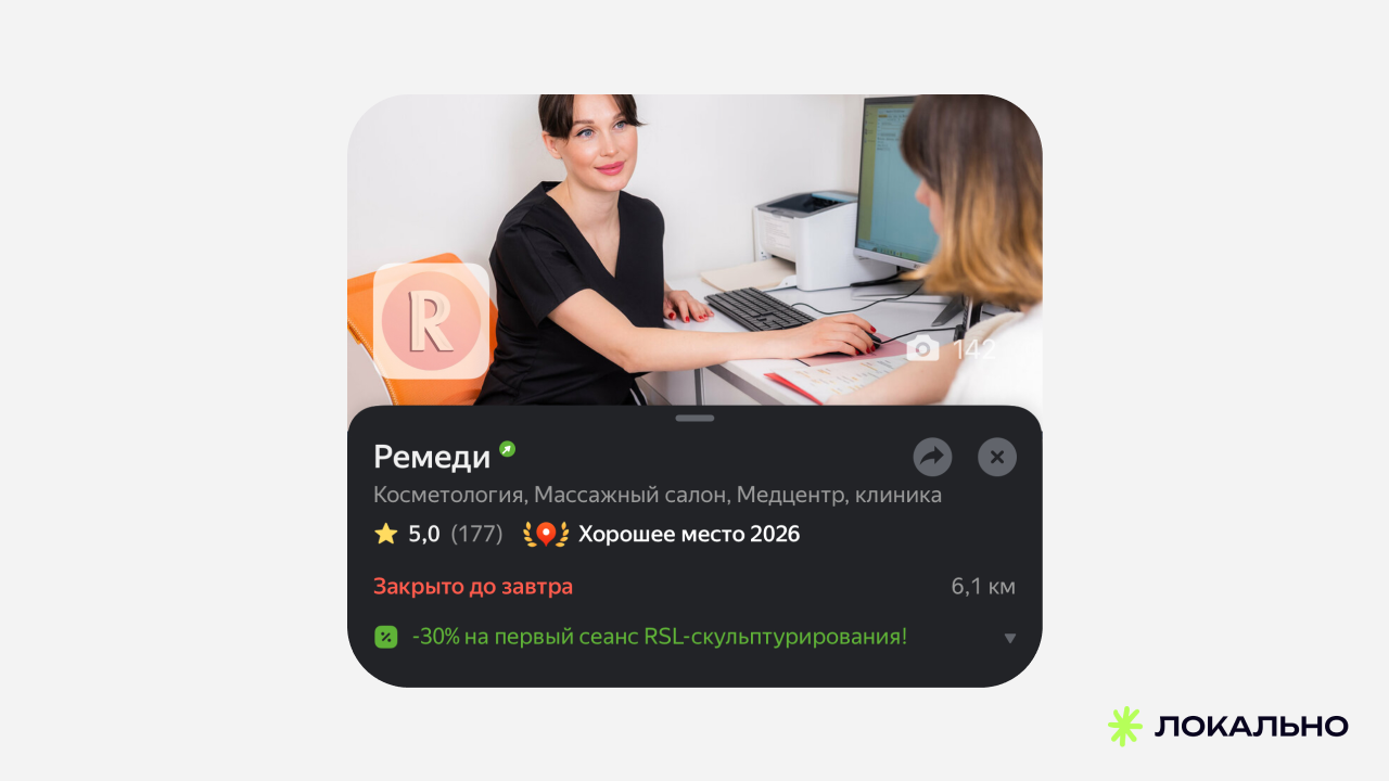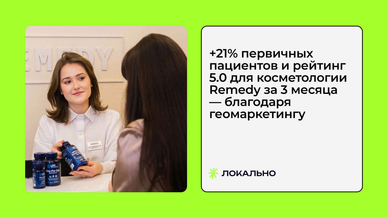 Косметология Remedy — показательный пример того, как системная работа с карточкой на геосервисах напрямую влияет на поток первичных пациентов. Никаких дорогих рекламных кампаний: только точечная оптимизация того, что уже есть.